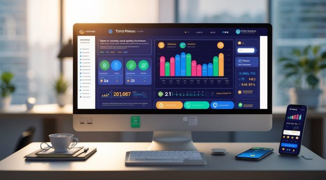 Meja kerja modern dengan komputer yang menampilkan antarmuka situs judi Toto Macau 2D terpercaya, dilengkapi dengan catatan dan ponsel di sekitarnya.